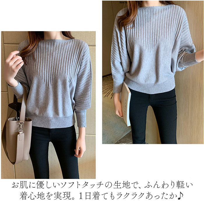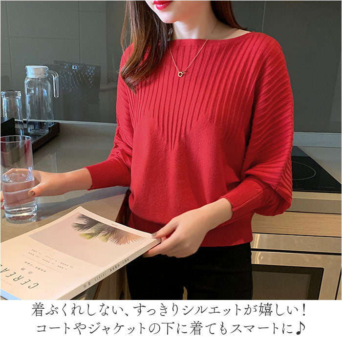 ニット レディース 長袖 通販 セーター ニットセーター ニットトップス ボートネック ドルマンスリーブ ぽわん袖 冬 秋冬 薄手 おしゃれ シンプル 無地 オシャレ 大人可愛い 通勤