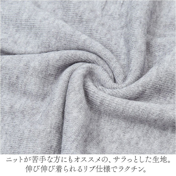 ・ニットが苦手な方にもオススメの、サラっとした生地。伸び伸び着られるリブ仕様でラクチン。