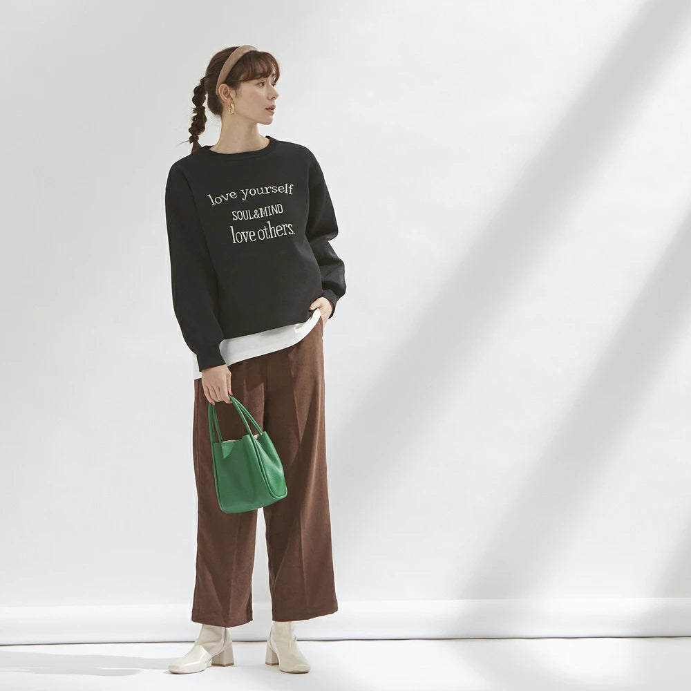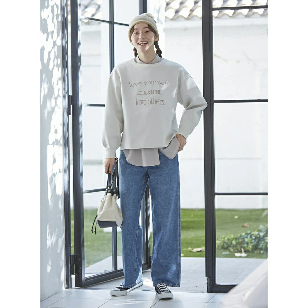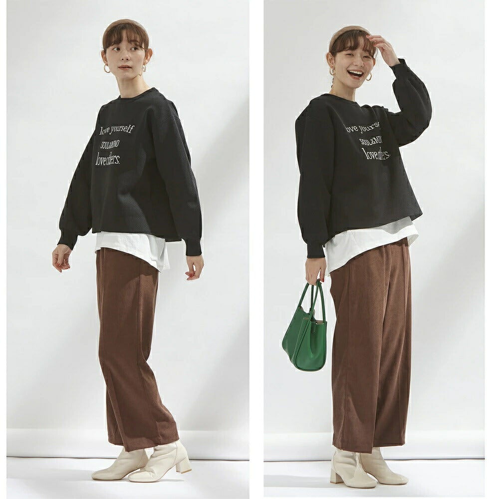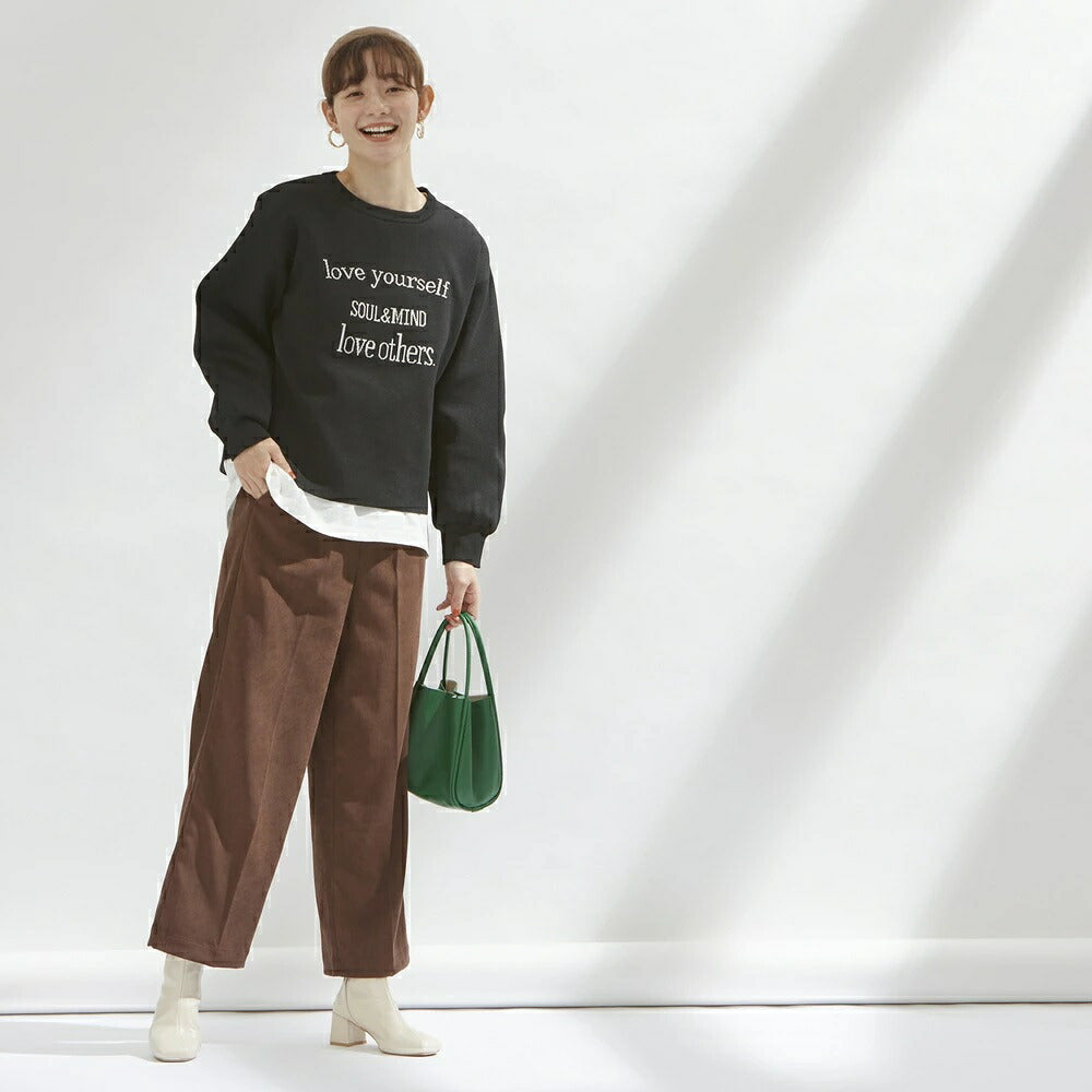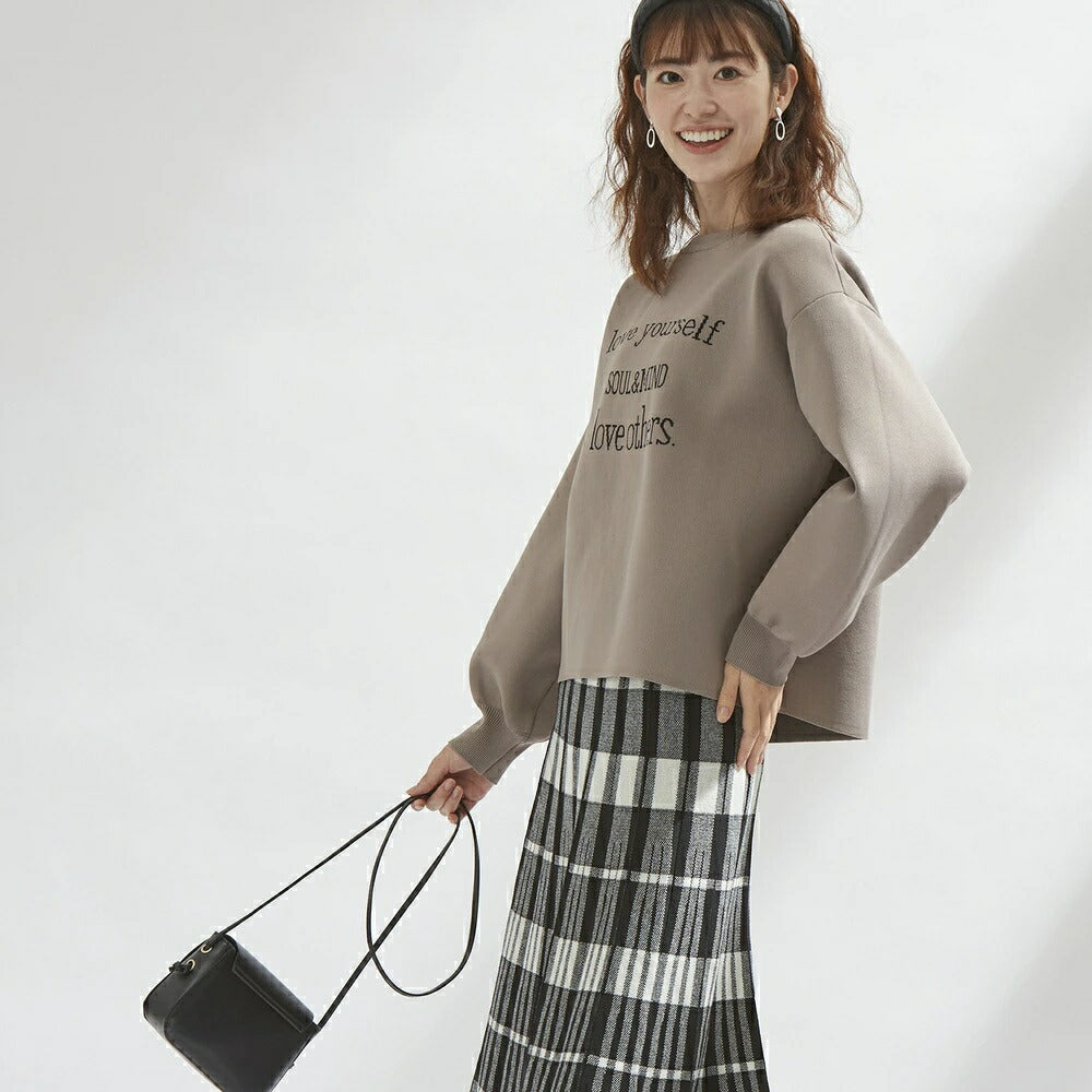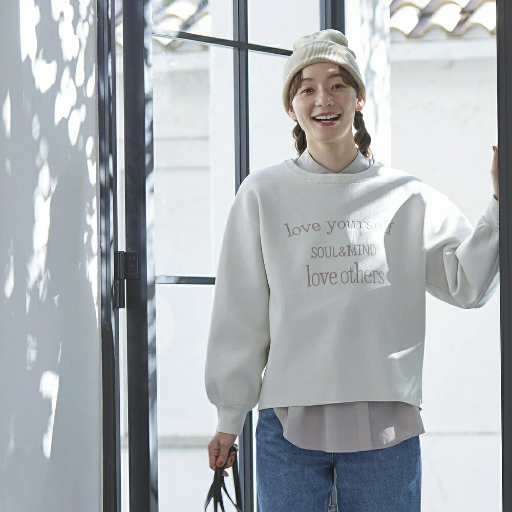 ・ふわふわと弾力のある程よいサイズ感のスポンジニットをバランスよく着こなして