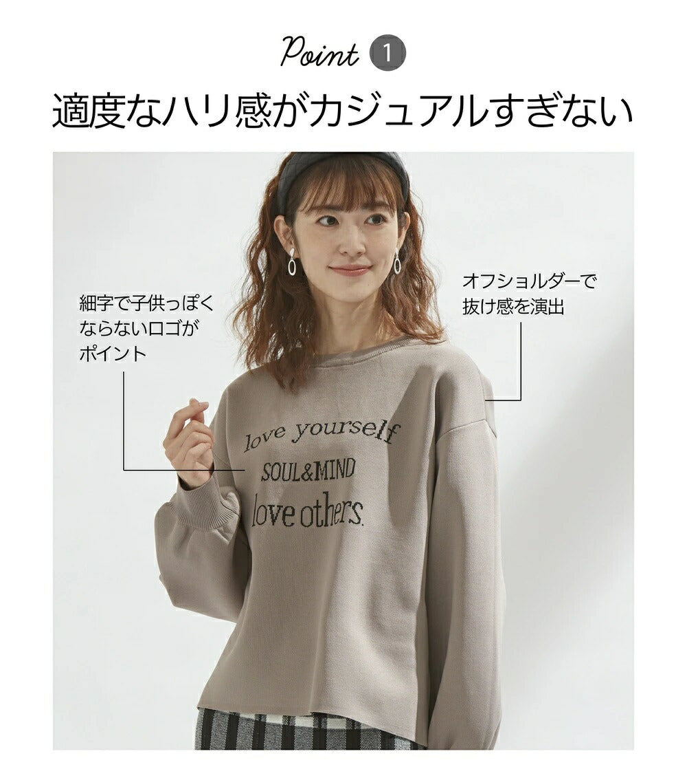 ニット レディース 長袖 通販 セーター プルオーバー ロゴ オフショルダー 大人魅せ、英字ロゴスポンジニットトップス 秋冬 秋 冬 春 おしゃれ シンプル 女性 大人かわいい カジュアル