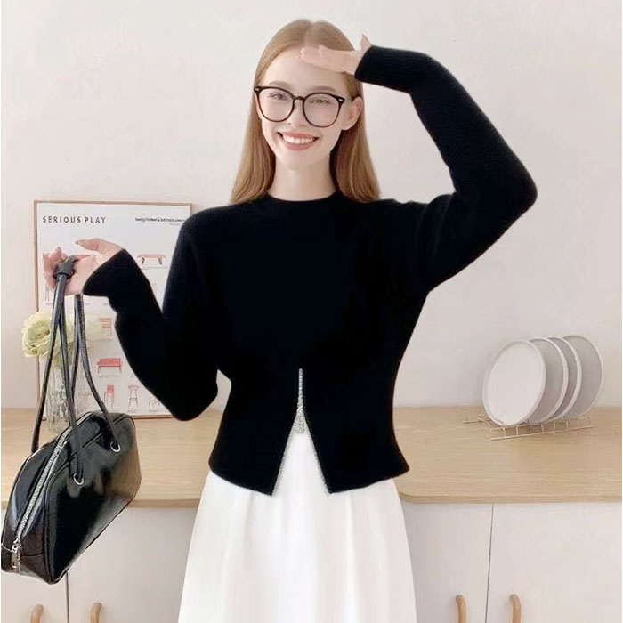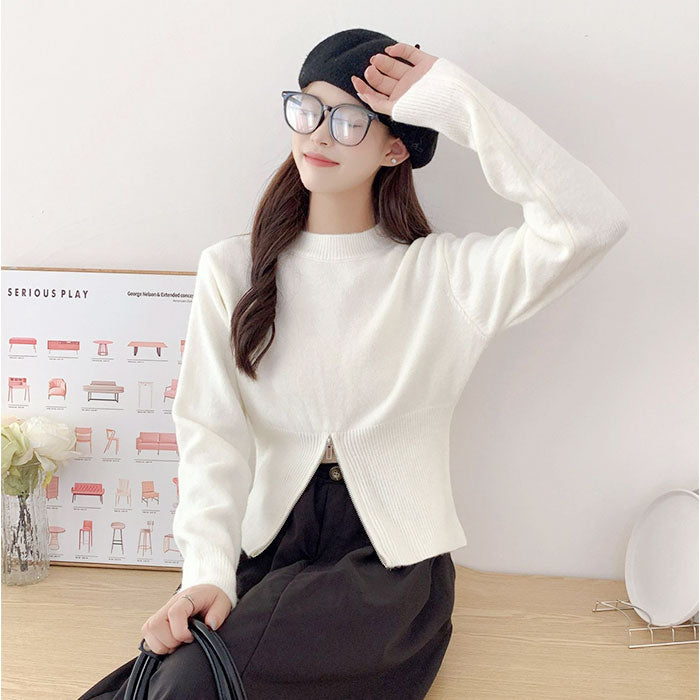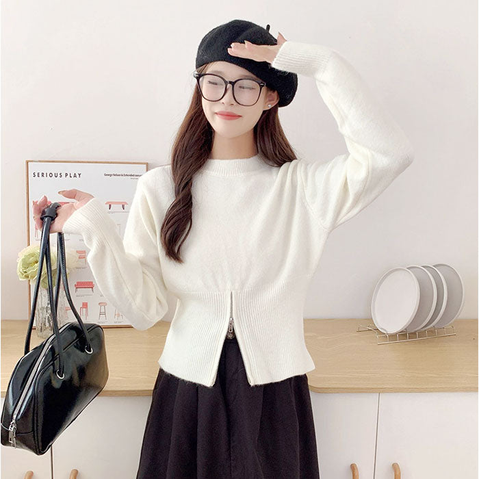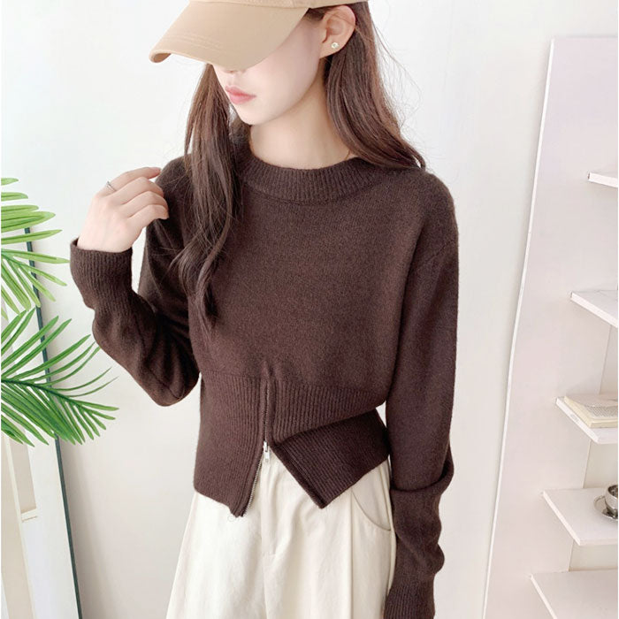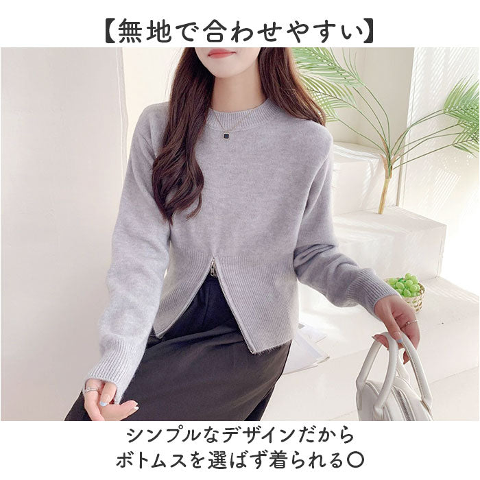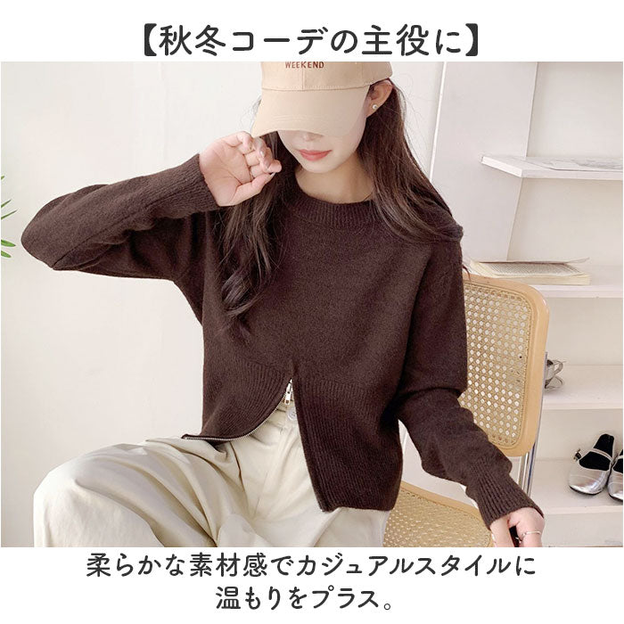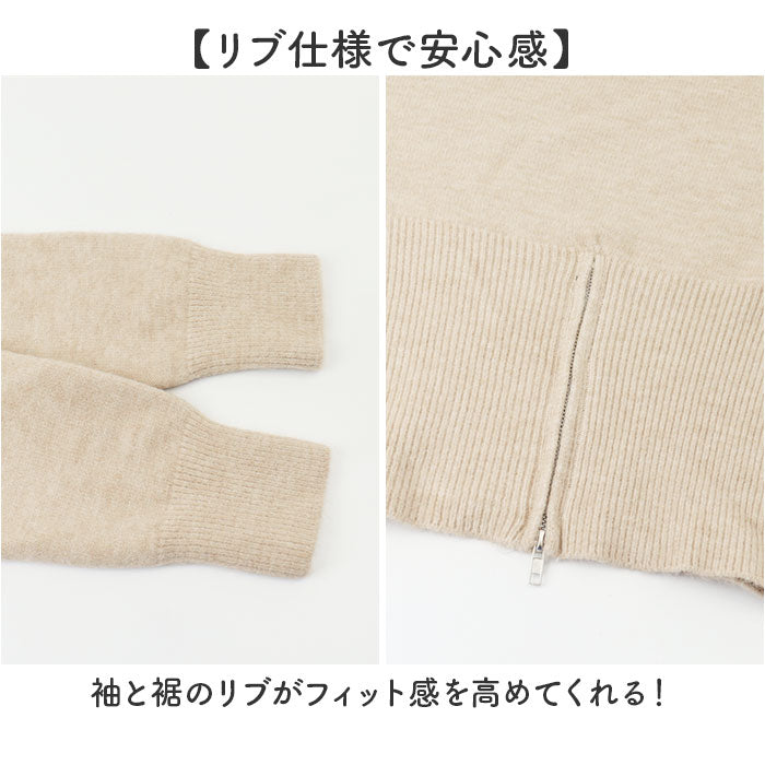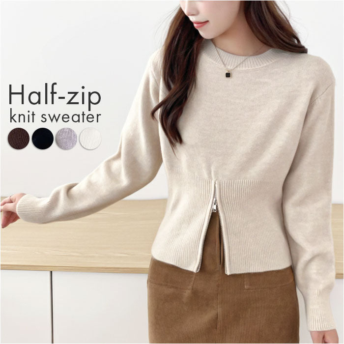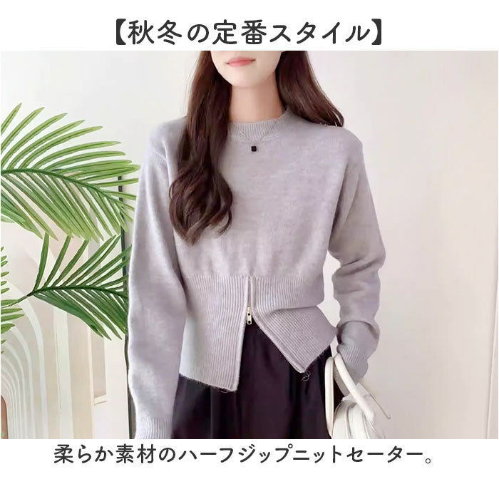 ニット レディース 長袖 通販 丸首 セーター ニットセーター 柔らかい おしゃれ プルオーバー ハーフジップ トップス 無地 カジュアル 暖かい オシャレ 冬 秋冬 防寒 オフィス 通勤