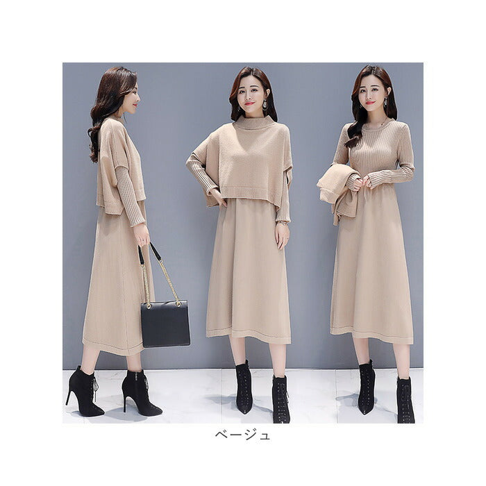 ニット ワンピース セットアップ 通販 ニットワンピース ニットワンピ セーター レディース ロング 長袖 冬 秋冬 きれいめ 上品 ロングワンピース 二次会 同窓会 お呼ばれ 通勤 オフィス