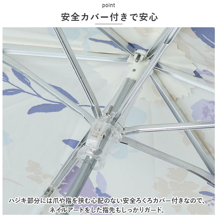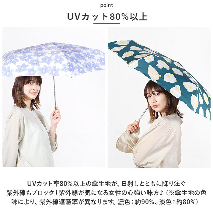 ・UVカット率80%以上の傘生地が、日射しとともに降り注ぐ紫外線もブロック!紫外線が気になる女性の心強い味方♪(※傘生地の色味により、紫外線遮蔽率が異なります。濃色:約90%、淡色:約80%)