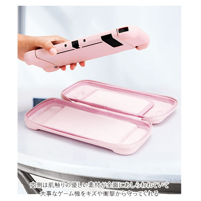 ・ケース表面はPU素材を採用。内側は肌触りの優しい素材が全面にあしらわれていて大事なゲーム機をキズや衝撃から守ってくれる。