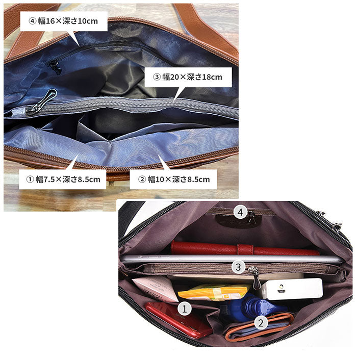 ・メイン収納:オープンポケット×1、ファスナー付きポケット×2