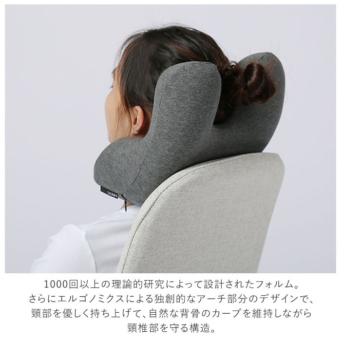 ・1000回以上の理論的研究によって設計されたフォルム。さらにエルゴノミクスによる独創的なアーチ部分のデザインで、頸部を優しく持ち上げて、自然な背骨のカーブを維持しながら頸椎部を守る構造。