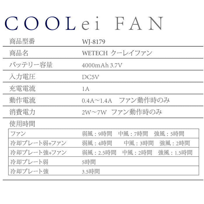 ・風量(強)と冷却プレート(約20℃設定)の同時使用でも1時間以上稼働できるバッテリー量