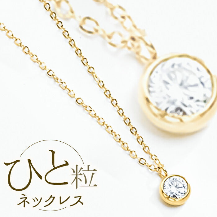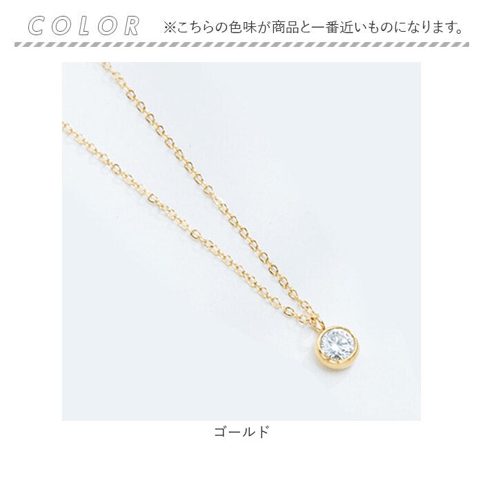 ゴールドカラー 一粒ストーンステンレスネックレス
