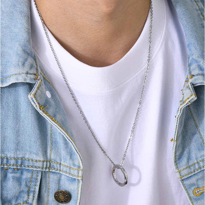 ネックレス メンズ 通販 ステンレスネックレス リングネックレス メンズネックレス ペンダント アクセサリー 男性 女性 シンプル カジュアル ひねり リング形状 かっこいい おしゃれ