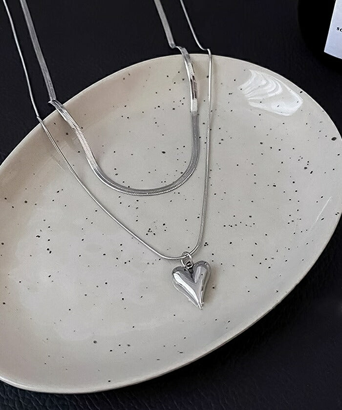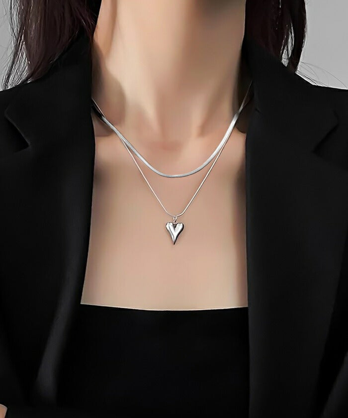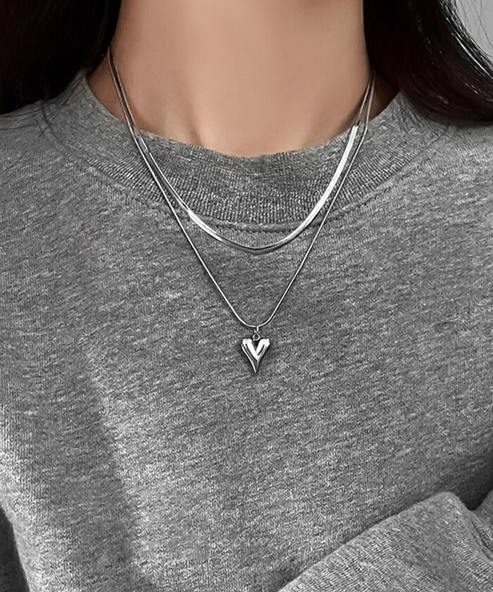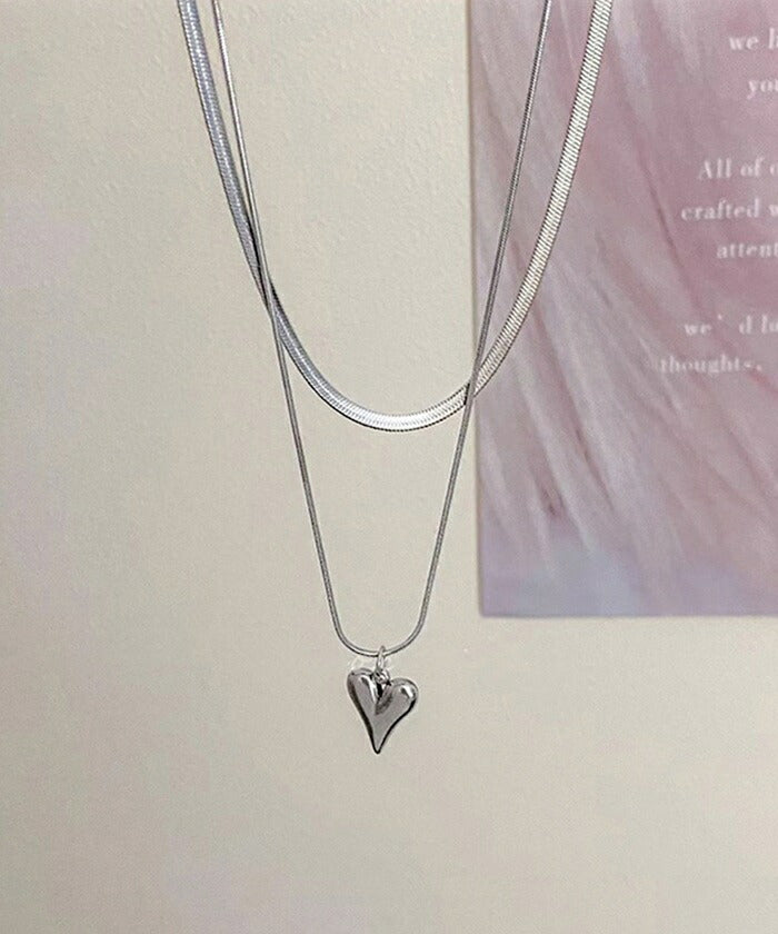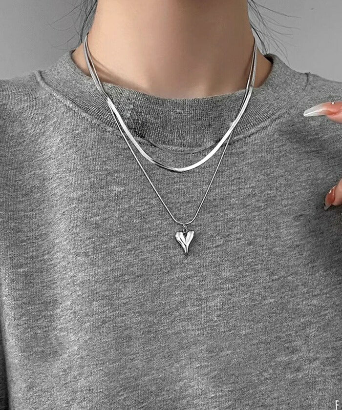 ・シンプルなダブルレイヤーネックレスにシルバーハートがついたネックレス。