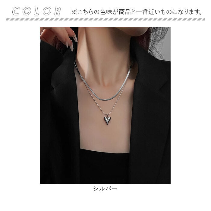 ネックレス レディース シルバー 通販 ペンダント 首飾り アクセサリー ジュエリー ハート シンプル 大人 かわいい おしゃれ 可愛い 女性 ダブルレイヤーハートモチーフネックレス