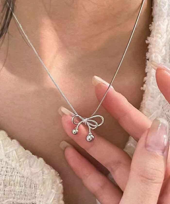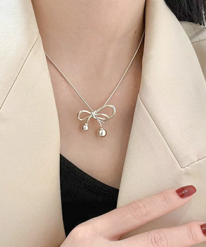 ネックレス レディース シルバー 通販 ペンダント 首飾り アクセサリー ジュエリー リボン シンプル 大人 かわいい おしゃれ 可愛い オシャレ 女性 アシンメトリーリボンネックレス
