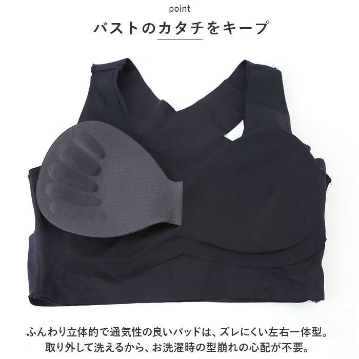 ・サラッとした生地感で、汗をかいてもムレにくい!ナイトブラや、ホットヨガなどのスポーツブラとしてもおすすめ。