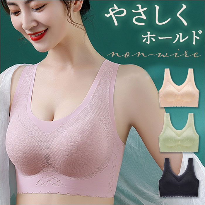 ノンワイヤーブラ 通販 ブラジャー インナー ナイトブラ シームレス ブラ 下着 肌着 ランジェリー スポーツブラ スポブラ 脇高 レース 柔らかい パッド付 U字バック 産前 産後 ノンホック