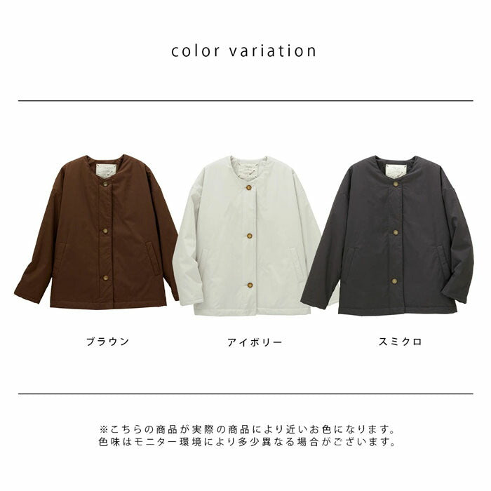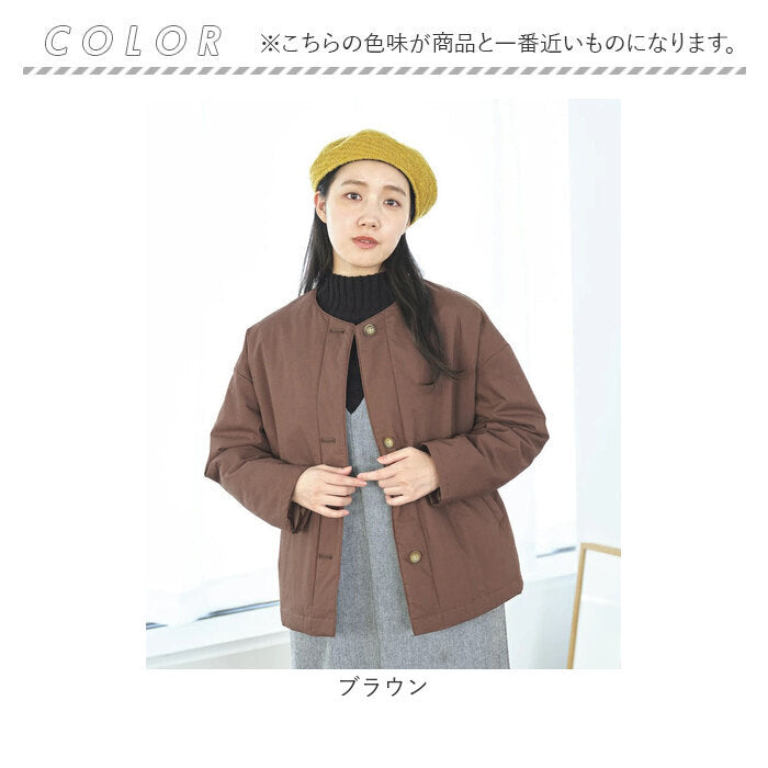 ノーカラージャケット レディース 秋 通販 ノーカラーコート 中綿コート ショート ジャンパー ブルゾン 環境に優しい あったか中綿ノーカラージャケット 冬 秋冬 軽量 軽い おしゃれ