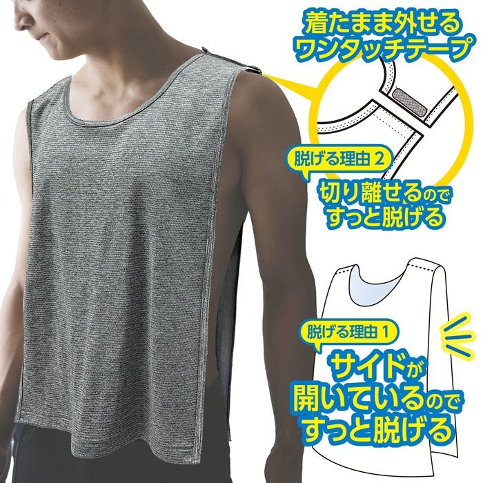 ・着たまま外せるワンタッチテープ付き。サイドが開いているのですっと脱げる。