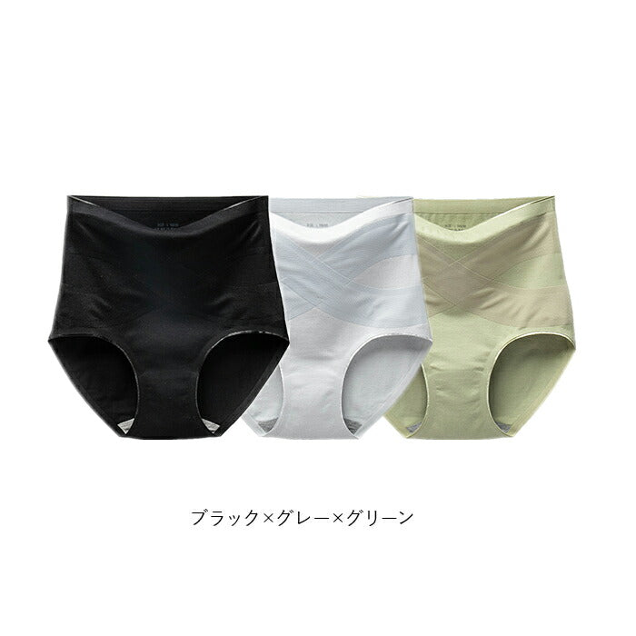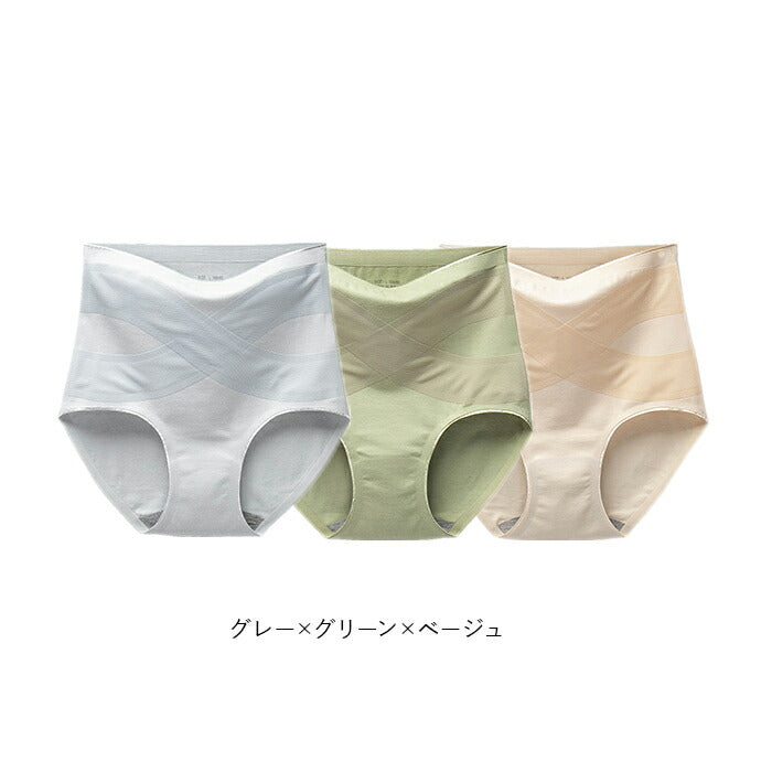 ハイウエスト ショーツ 綿 レディース 3点セット 通販 ハイウエストショーツ パンツ 下着 ガードル 補正 綿素材 腹巻き ストレッチ 伸縮性 クロス エックスライン 肌触りがいい
