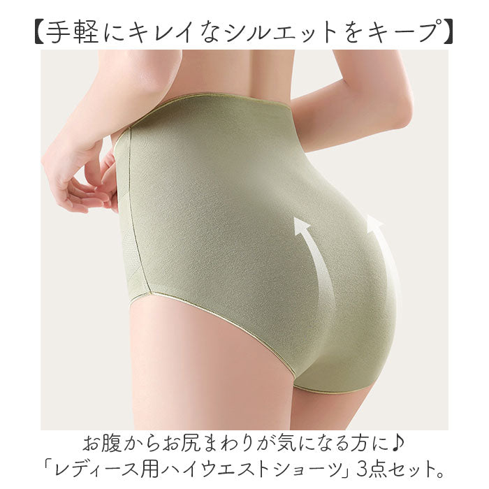 ・お腹からお尻まわりが気になる方に♪「レディース用ハイウエストショーツ」3点セット。