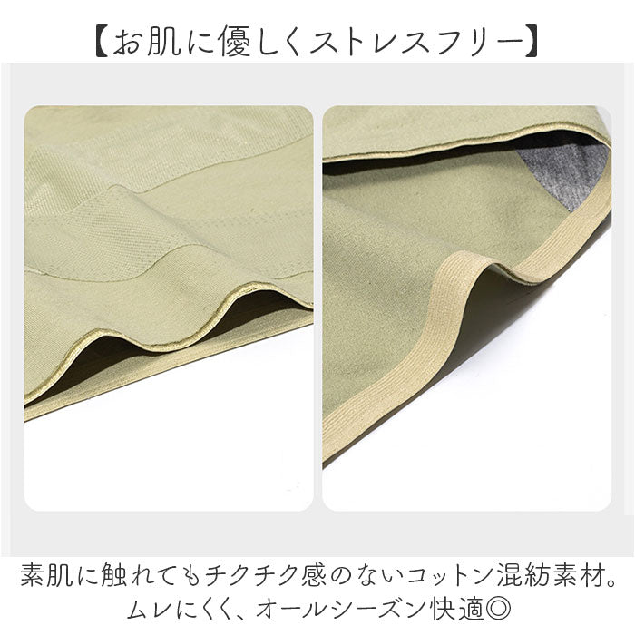 ・素肌に触れてもチクチク感のないコットン混紡素材。ムレにくく、オールシーズン快適◎