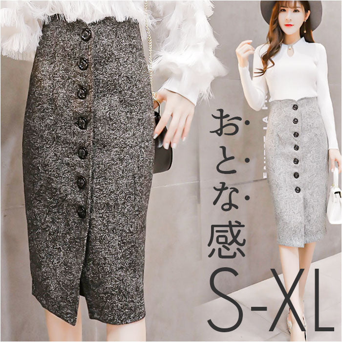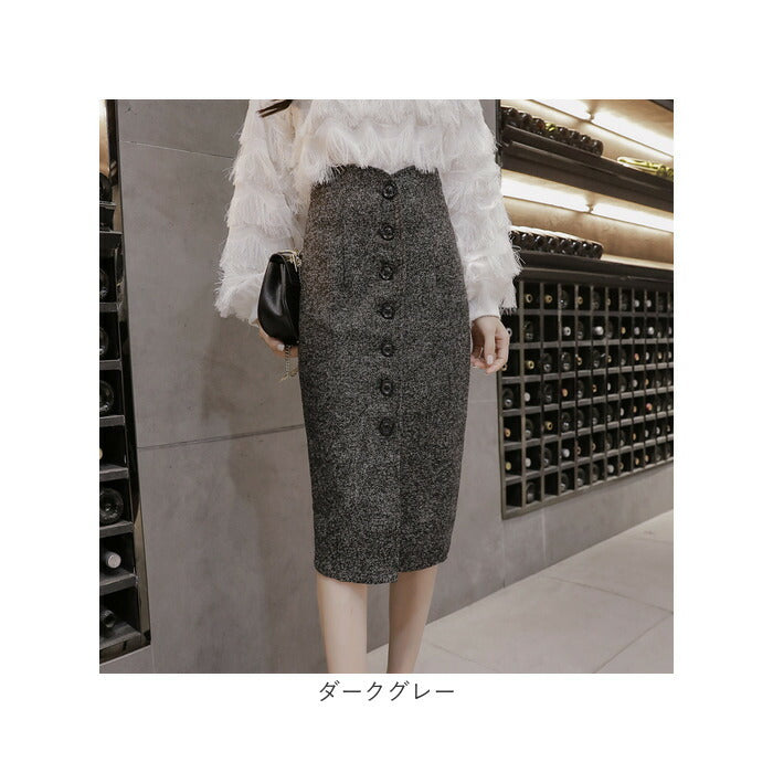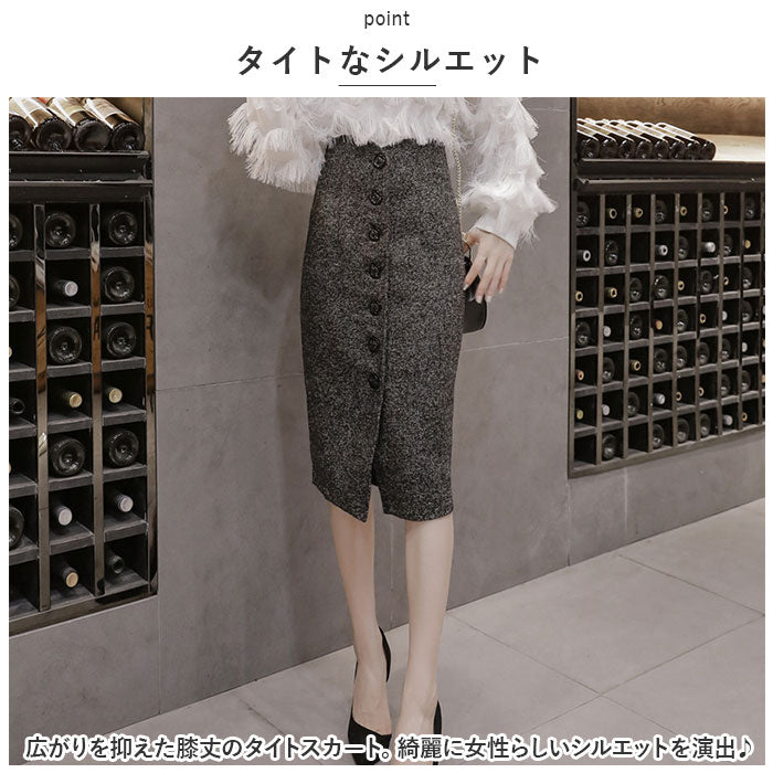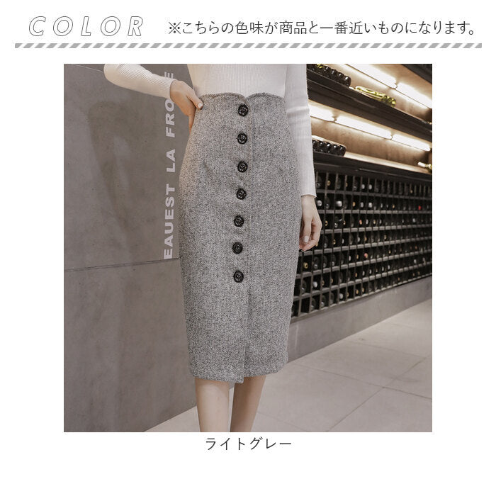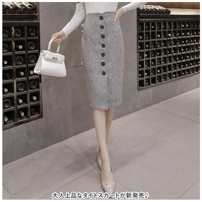 ハイウエスト スカート 膝丈 通販 タイトスカート タイト ペンシルスカート ミモレ丈 ミモレ ひざ丈 細長い レディース ボタン フォーマル 春 秋 冬 オフィス カジュアル シンプル 韓国