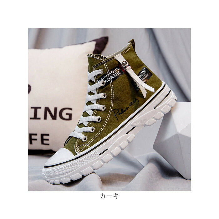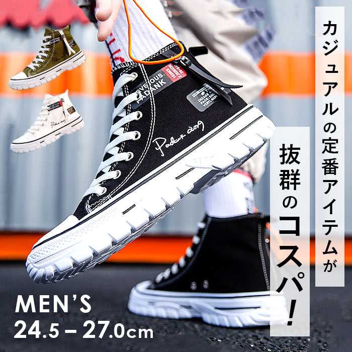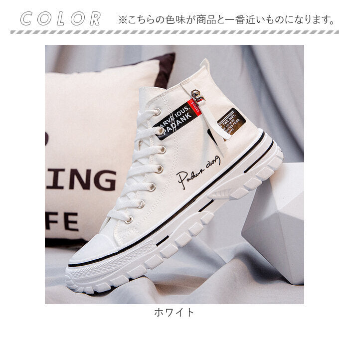 ハイカット 厚底スニーカー メンズ スニーカー 身長up 通販 ハイカットスニーカー 厚底スニーカー 運動靴 靴 くつ クツ 厚底 通気性 滑りにくい レースアップ キャンバス地 通勤 通学