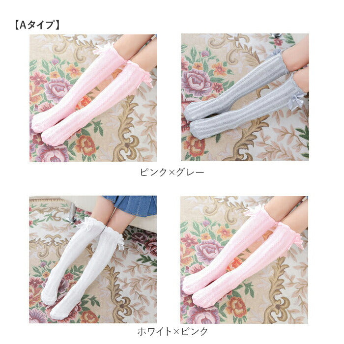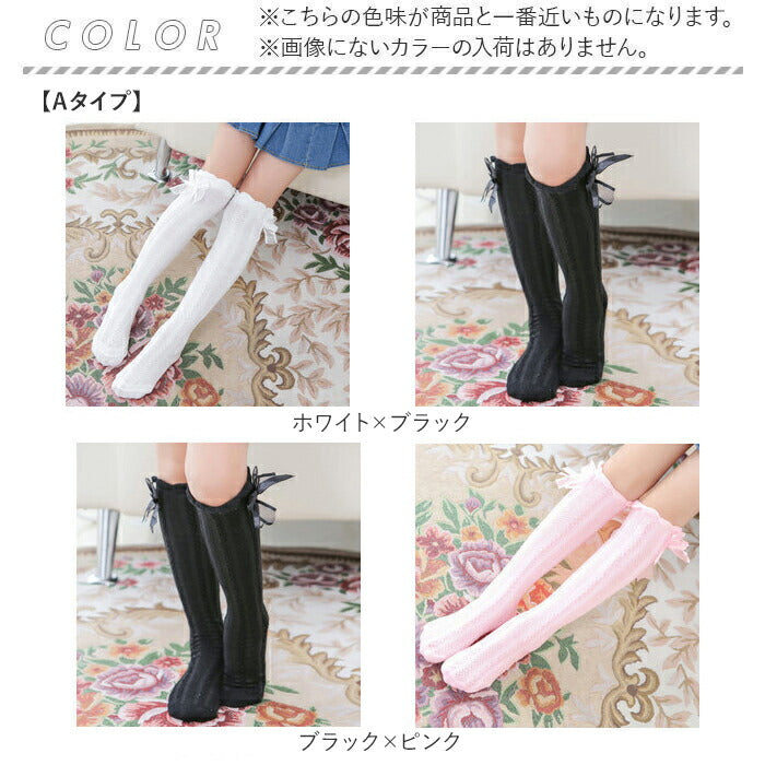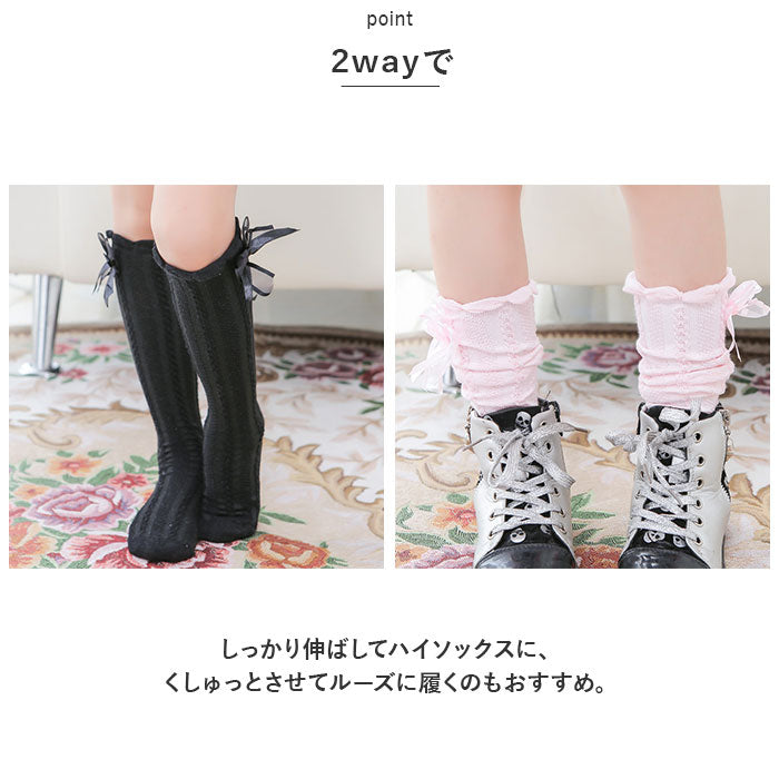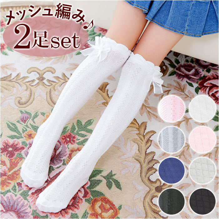 ハイソックス 女の子 リボン フォーマル 2点セット キッズ 通販 ニーハイソックス 靴下 くつ下 2点 セット 2足組 2足 メッシュ ロング ソックス キッズ 綿 くしゅくしゅ かわいい 無地 子供 子ども こども ガールズ おしゃれ シンプル 蒸れにくい
