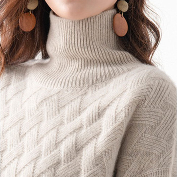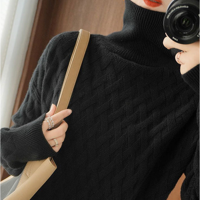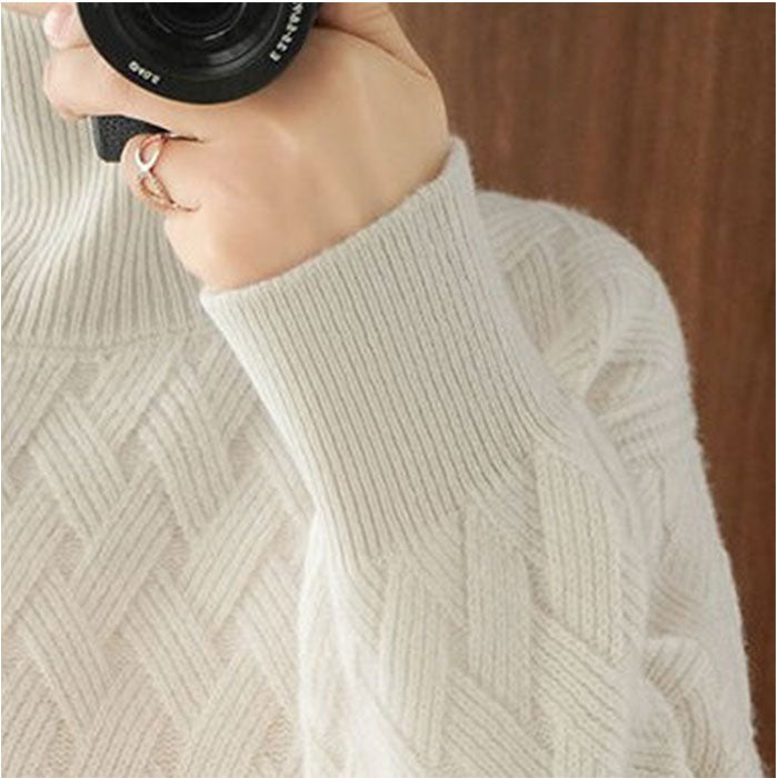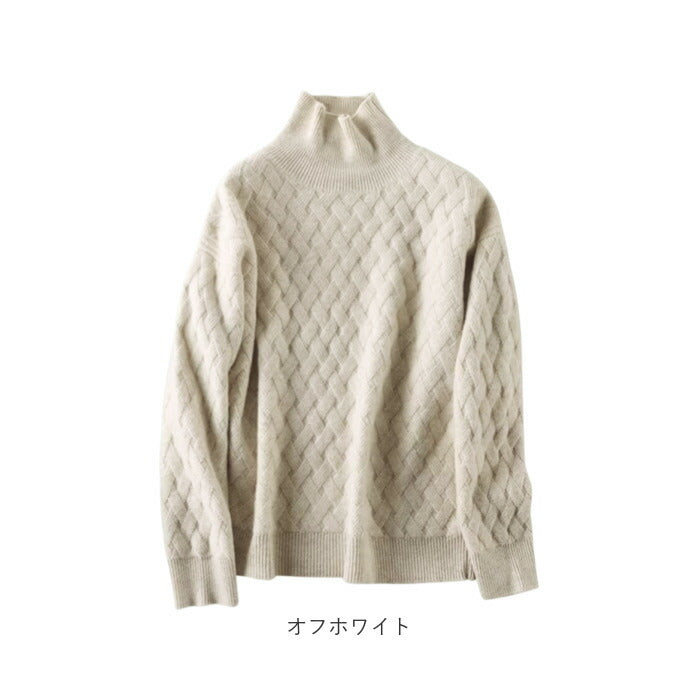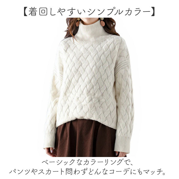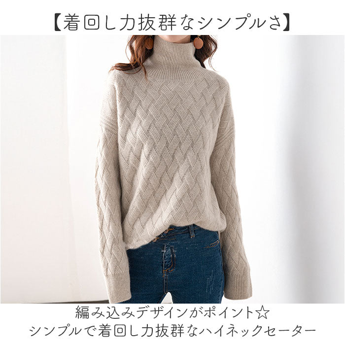 ・編み込みデザインがポイント☆シンプルで着回し力抜群なハイネックセーター