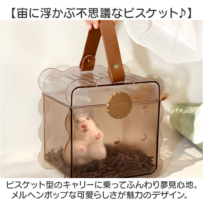 ・スクエア型のキャリー本体は、ハムちゃんの様子がパッとひと目で見て取れるクリア素材仕上げ。