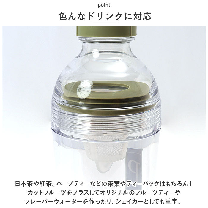 ・日本茶や紅茶、ハーブティーなどの茶葉やティーバックはもちろん!カットフルーツをプラスしてオリジナルのフルーツティーやフレーバーウォーターを作ったり、シェイカーとしても重宝。