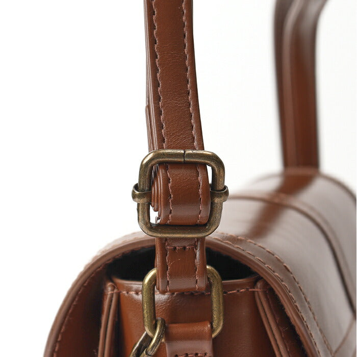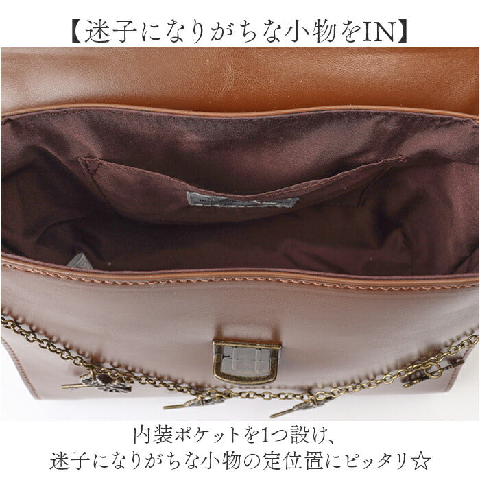 ・ベーシックカラーの合皮にゴールドパーツを組み合わせたシンプルで上品な作り。