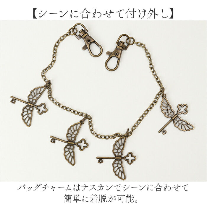 ・フライングキーをバッグチャームに採用。アンティークゴールドで程よいアクセントに☆