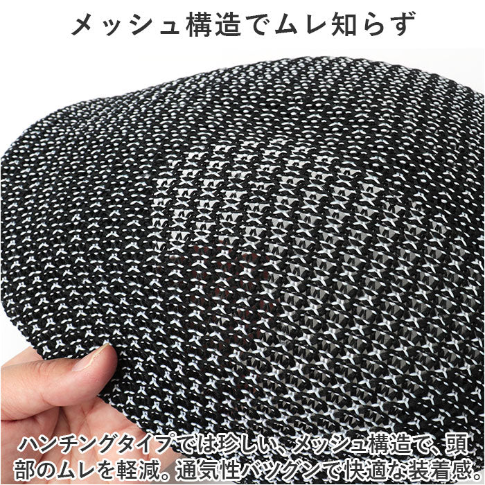 ・ハンチングタイプでは珍しい、メッシュ構造で、頭部のムレを軽減。通気性バツグンで快適な装着感。