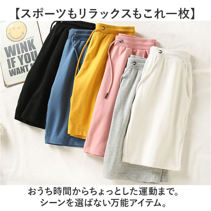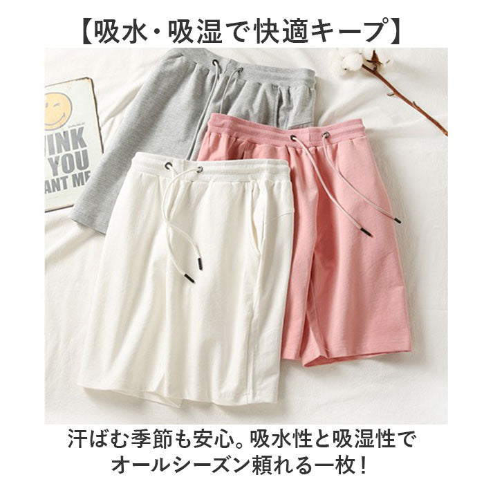 ハーフパンツ 短パン 通販 ルームウェア 部屋着 スウェット スウェットパンツ 動きやすい メンズ レディース ソフト やわらかい 吸汗 ポケット ウエストゴム ひも 紐 楽々 調整可能 男性