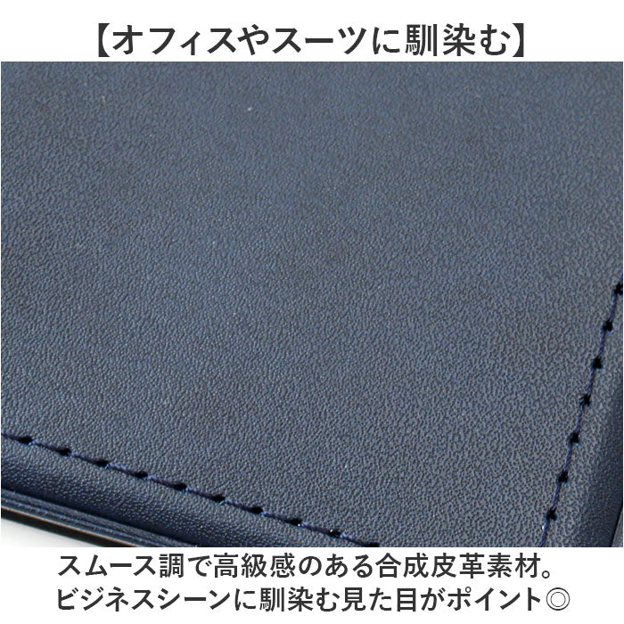 ・スムース調で高級感のある合成皮革素材。ビジネスシーンに馴染む見た目がポイント◎