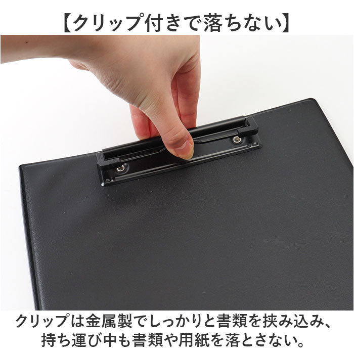 ・クリップは金属製でしっかりと書類を挟み込み、持ち運び中も書類や用紙を落とさない。