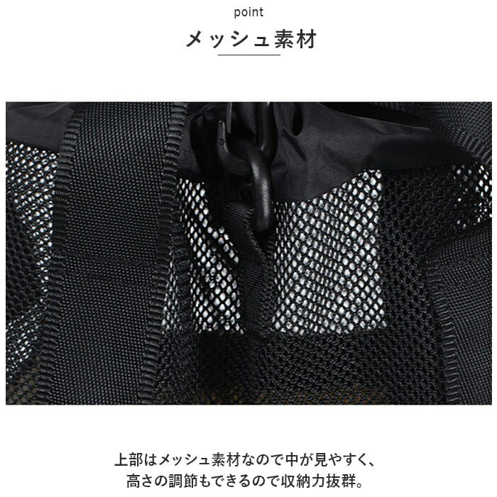 ・上部はメッシュ素材なので中が見やすく、高さの調節もできるので収納力抜群。