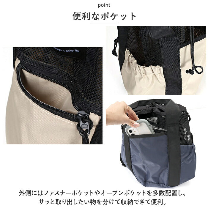 ・開口部はドローコード付きでキュッと絞れる巾着タイプ。