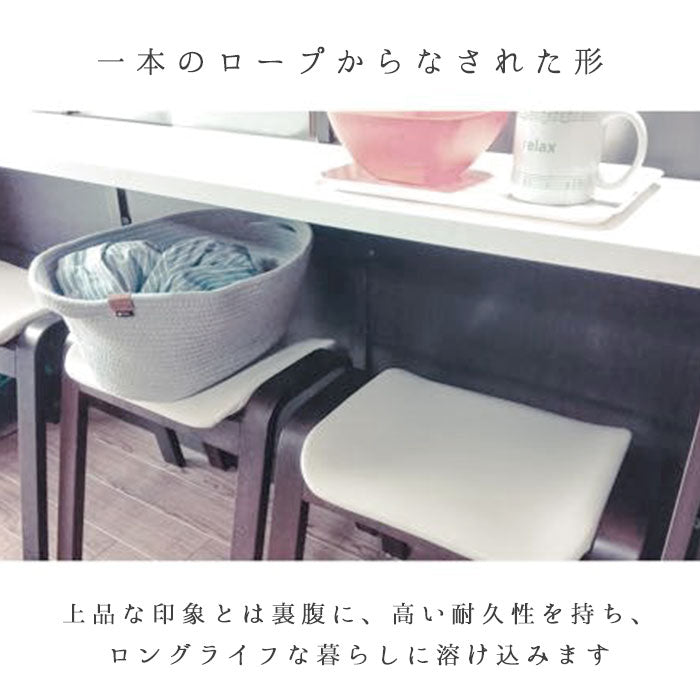 ・一本のコットンロープを丁寧に紡いで形づくられた曲線のラインが優しい、モダンクラシカルなモック・ロープバスケット。