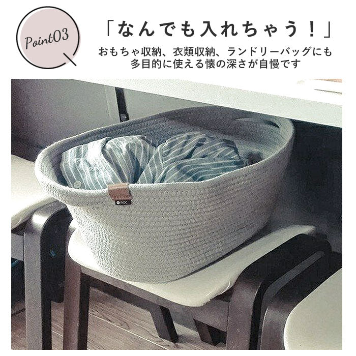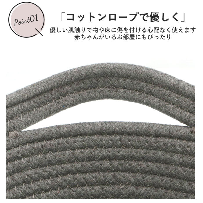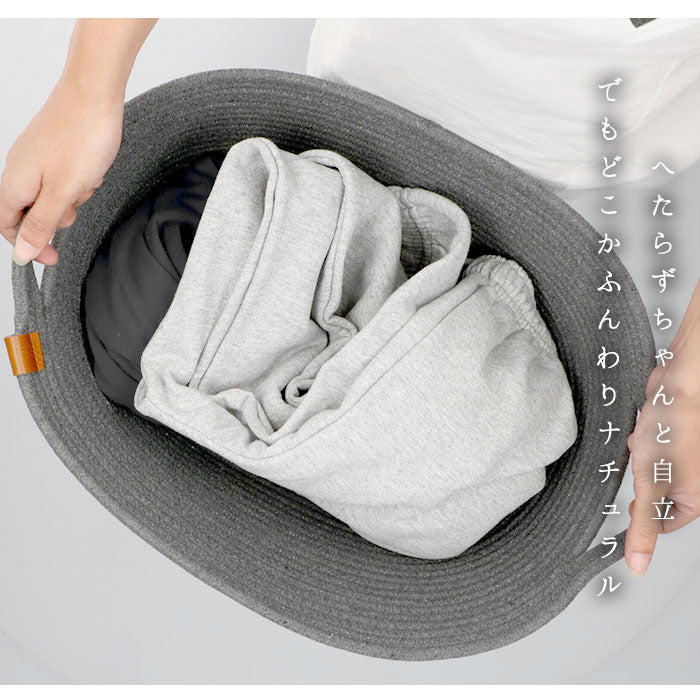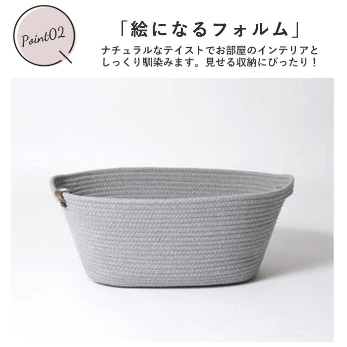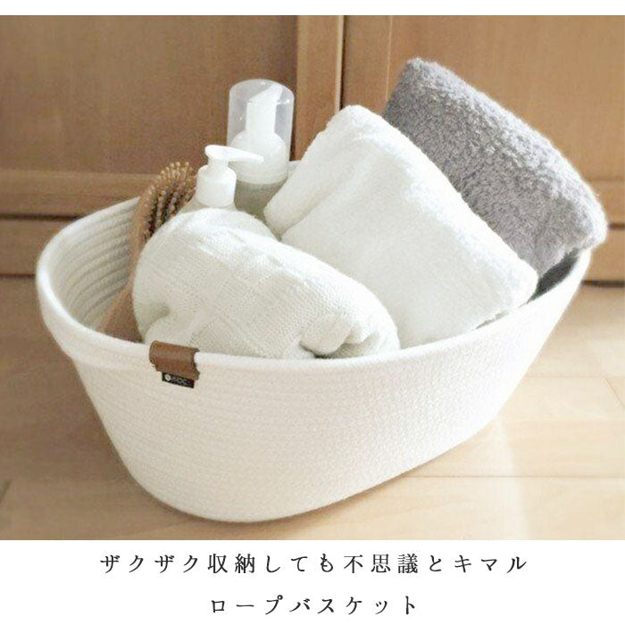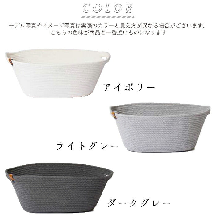 バスケット かご おしゃれ 通販 収納 シンプル ロープバスケット カゴ 無地 北欧 収納ボックス 収納ケース 丸 楕円 タオル パジャマ 衣類 カバン リビング インテリア 布 コットンロープ