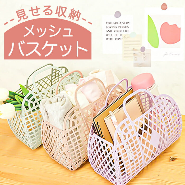 バスケット 持ち手付 通販 サン宝石 インテリアメッシュバスケット かご 籠 カゴ メッシュバスケット プラスチック 小物入れ 収納ケース サンホ KO-6298 収納 ケース おしゃれ かわいい
