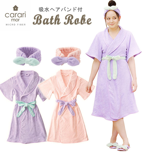 バスローブ ヘアバンド付き carari カラリモア 通販 吸水バスローブ ヘアバンドセット レディース ママ マイクロファイバー 吸水 速乾 吸水ふわふわヘアバンド かわいい おしゃれ パステルカラー 風呂 バスタイム お風呂上り ふわふわ もこもこ やわらか 5分袖 五分袖