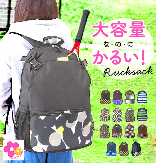 バックパック hanna hula sports ハンナフラスポ−ツ 通販 レディース かわいい 可愛い おしゃれ お洒落 ラケットバッグ テニスラケット入れ リュックサック