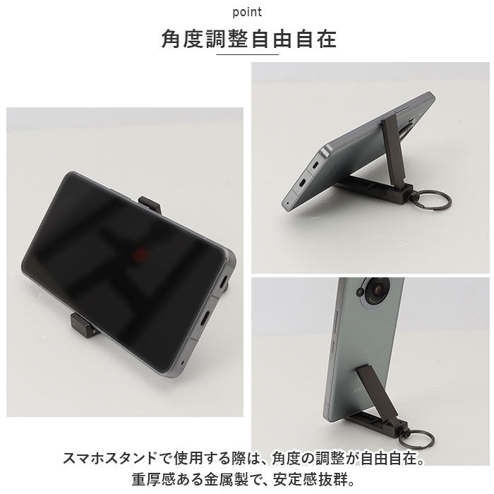 ・スマホスタンドで使用する際は、角度の調整が自由自在。重厚感ある金属製で、安定感抜群。