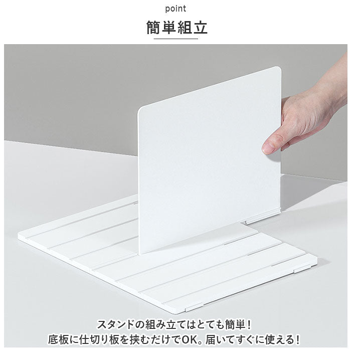 ・スタンドの組み立てはとても簡単!底板に仕切り板を挟むだけでOK。届いてすぐに使える!