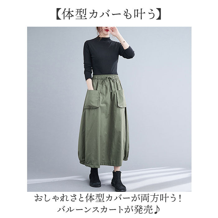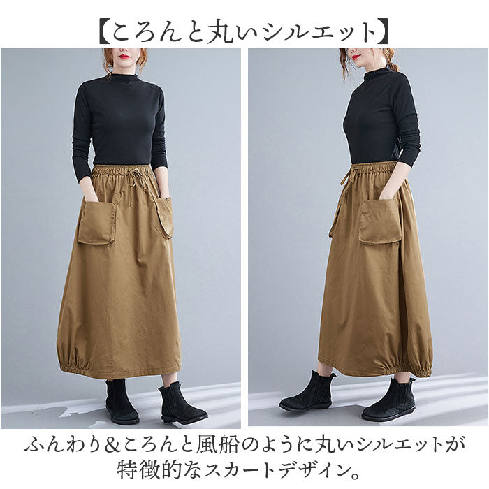バルーンスカート ロングスカート 体型カバー レディース 通販 Aラインスカート スカート レディーススカート バルーン Aライン ウエストゴム マキシ マキシ丈 ロング ロング丈 ゆったり