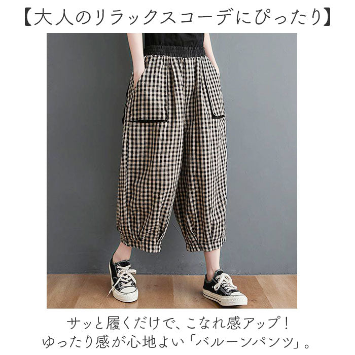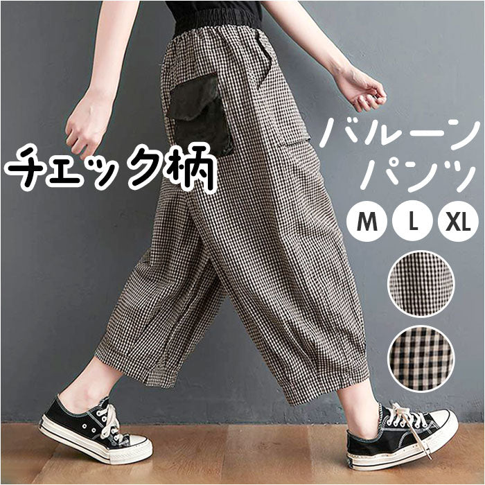 バルーンパンツ コクーンパンツ ゆったり チェック