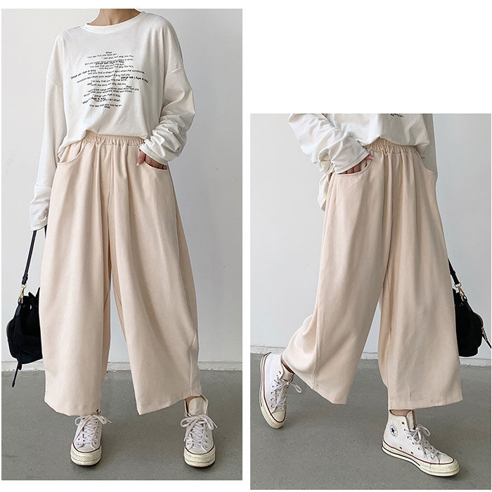 ・ワイドで脚の動きを邪魔しない楽ちんシルエット。様々なトップスとも相性が良く、コーディネートの幅が広がる◎