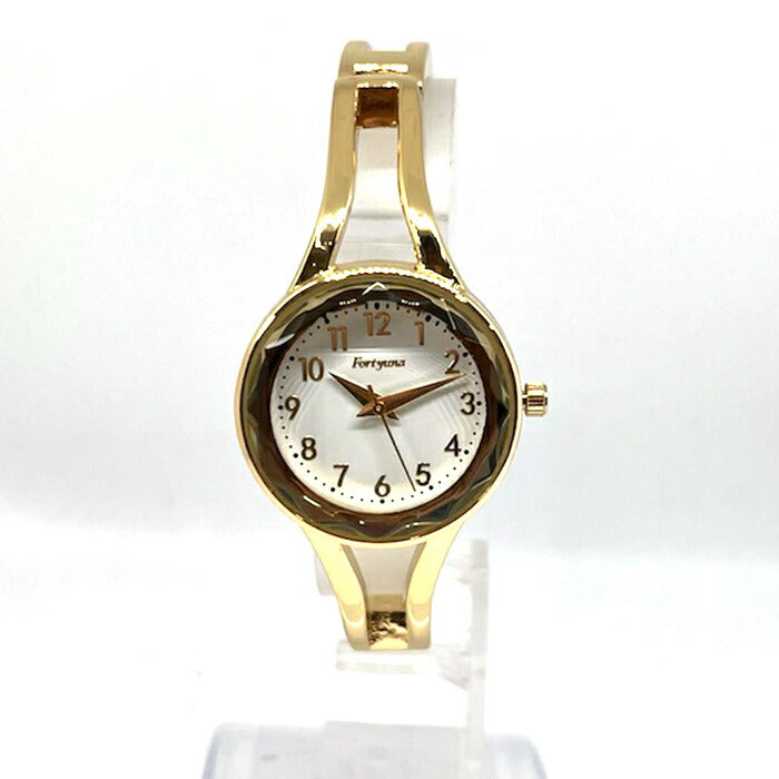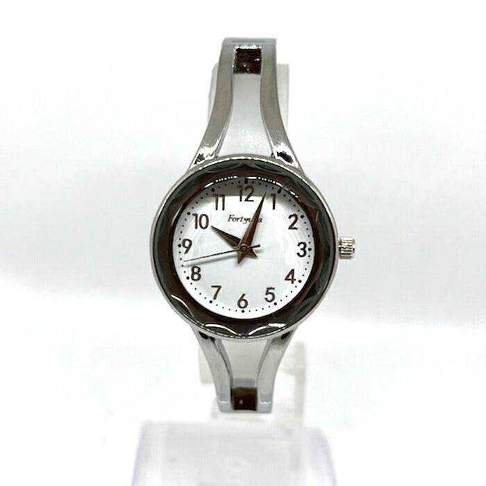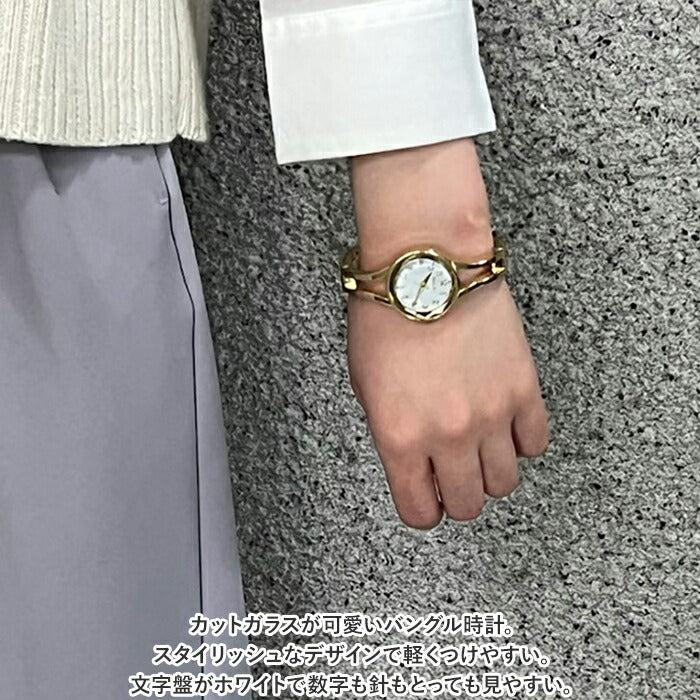 ・カットガラスが可愛いバングル時計。スタイリッシュなデザインで軽くつけやすい。文字盤がホワイトで数字も針もとっても見やすい。
