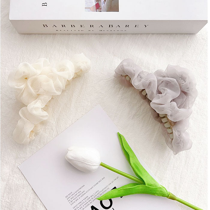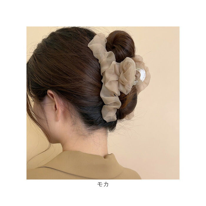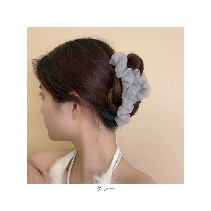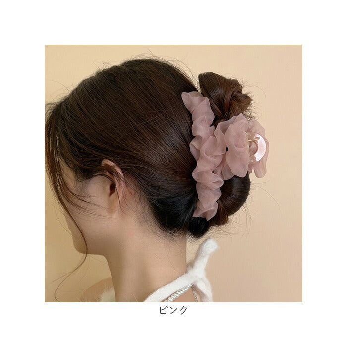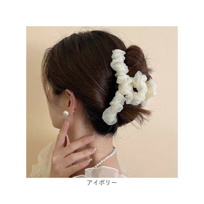バンスクリップ 大きめ しっかり 通販 ヘアクリップ ヘアークリップ ヘアアクセサリー 髪飾り 髪留め まとめ髪 シアー フリル ハーフアップ シンプル 無地 おしゃれ 上品 きれいめ