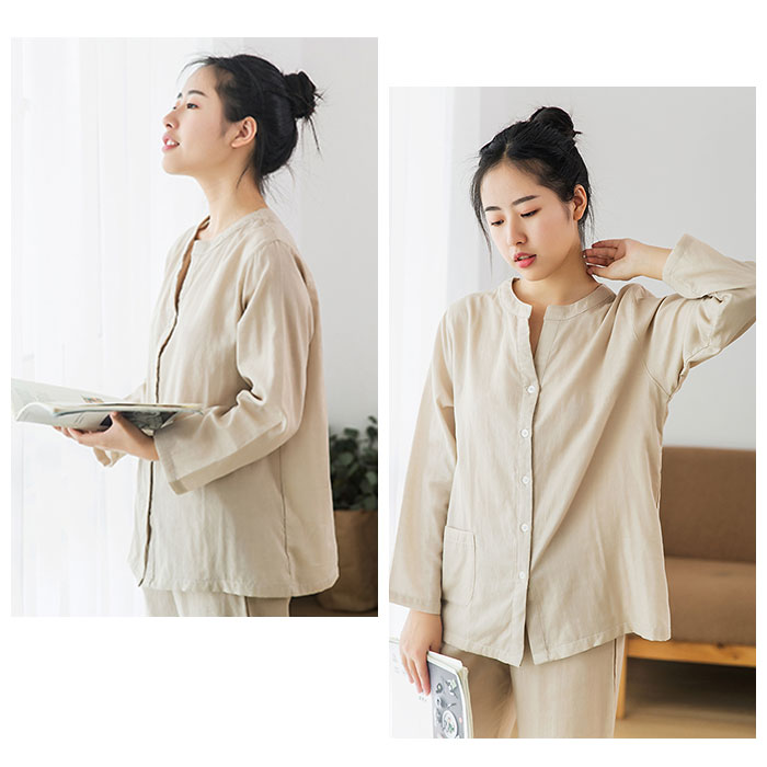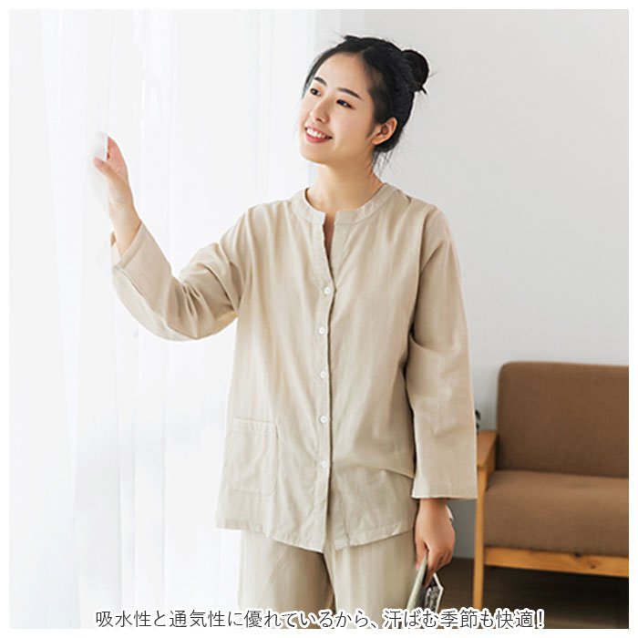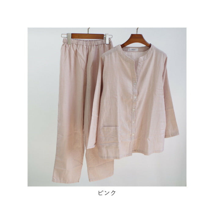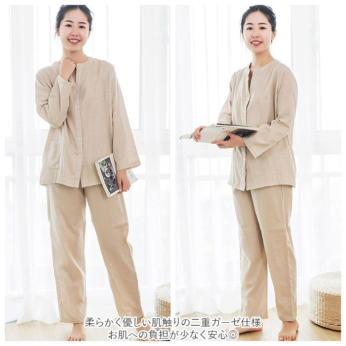 パジャマ ガーゼ レディース 長袖 通販 二重ガーゼパジャマ 綿100% コットン 上下セット 長ズボン 秋 冬 春 ルームウェア 部屋着 ダブルガーゼ ふんわり 柔らかい 前開き ボタン 襟なし
